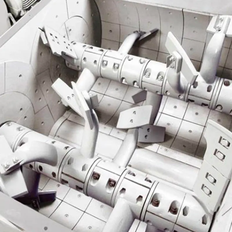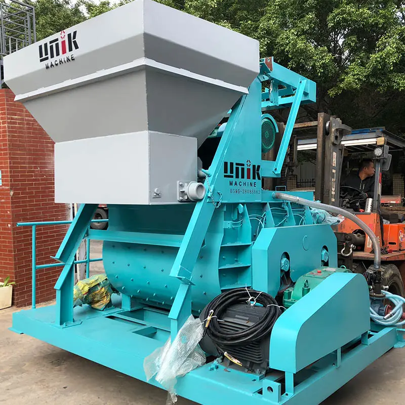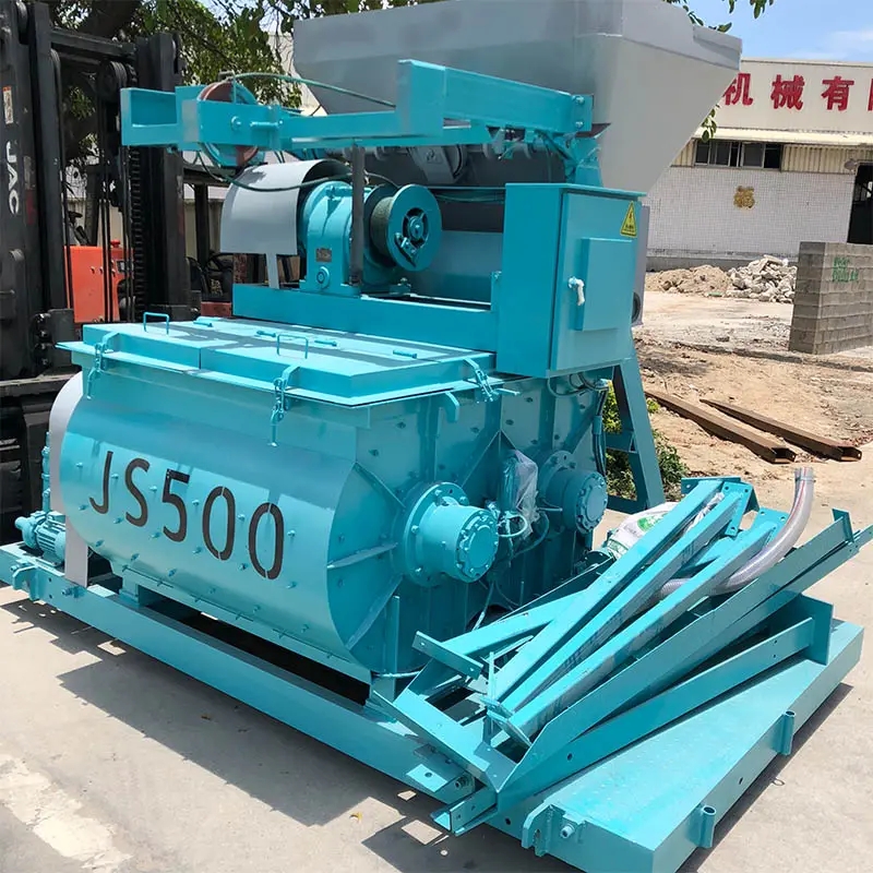 ЈС обавезни миксер се углавном састоји од два хоризонтално распоређена кружна бубња за мешање у облику жлебова, две осовине за мешање које се ротирају у супротним смеровима и ротационог механизма. Неколико група лопатица за мешање је постављено на две осовине, смеша се меша наизменично у два бубња за мешање. С једне стране, смеша на дну и средини бубња за мешање је окренута нагоре, а са друге стране, смеша се гура напред и назад дуж осе, тако да се мешавина може обавити брзо и равномерно.